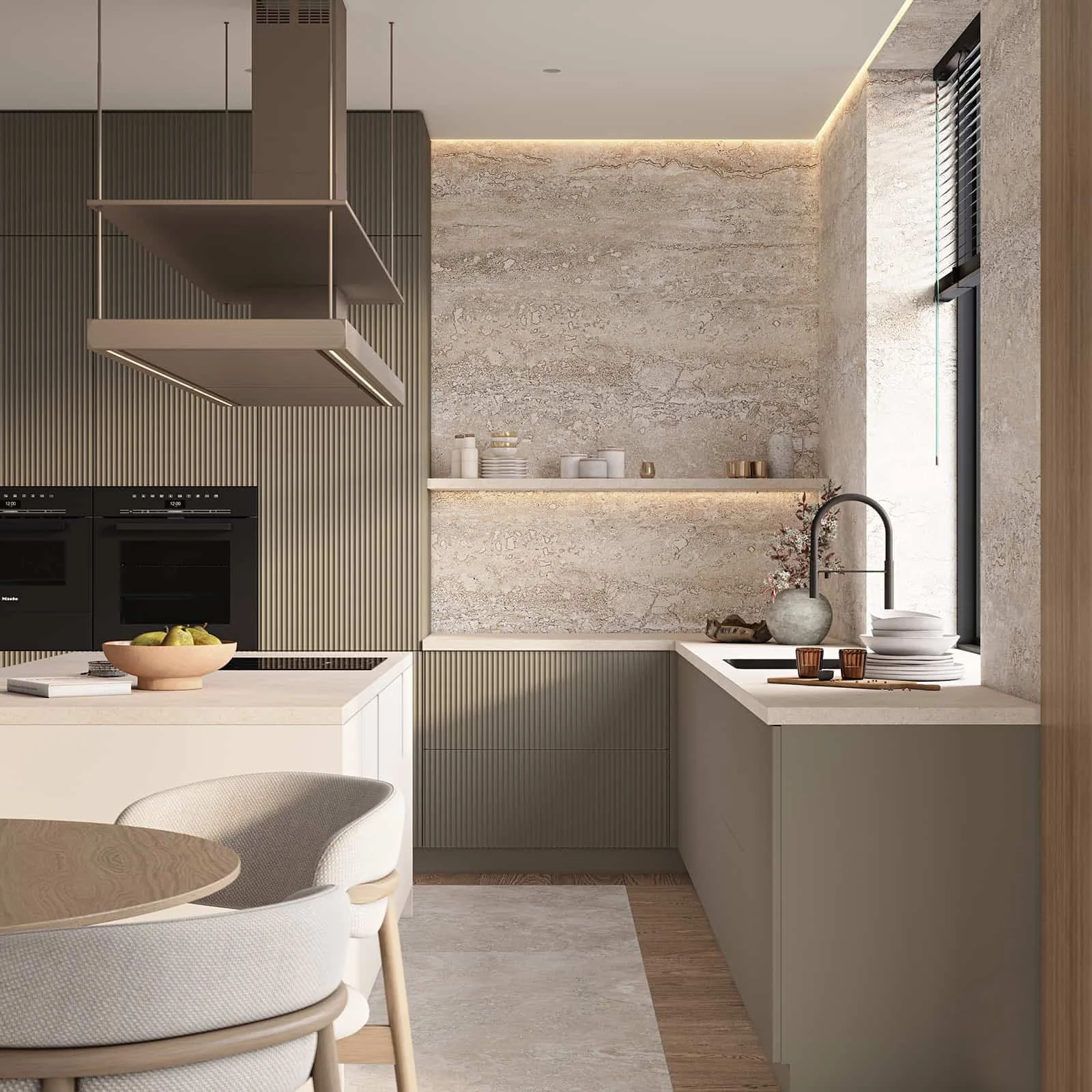 Fronts: T646 / Т622 Lacquered MDF, color NCS S 4010-G50Y Matt / 156 Matt