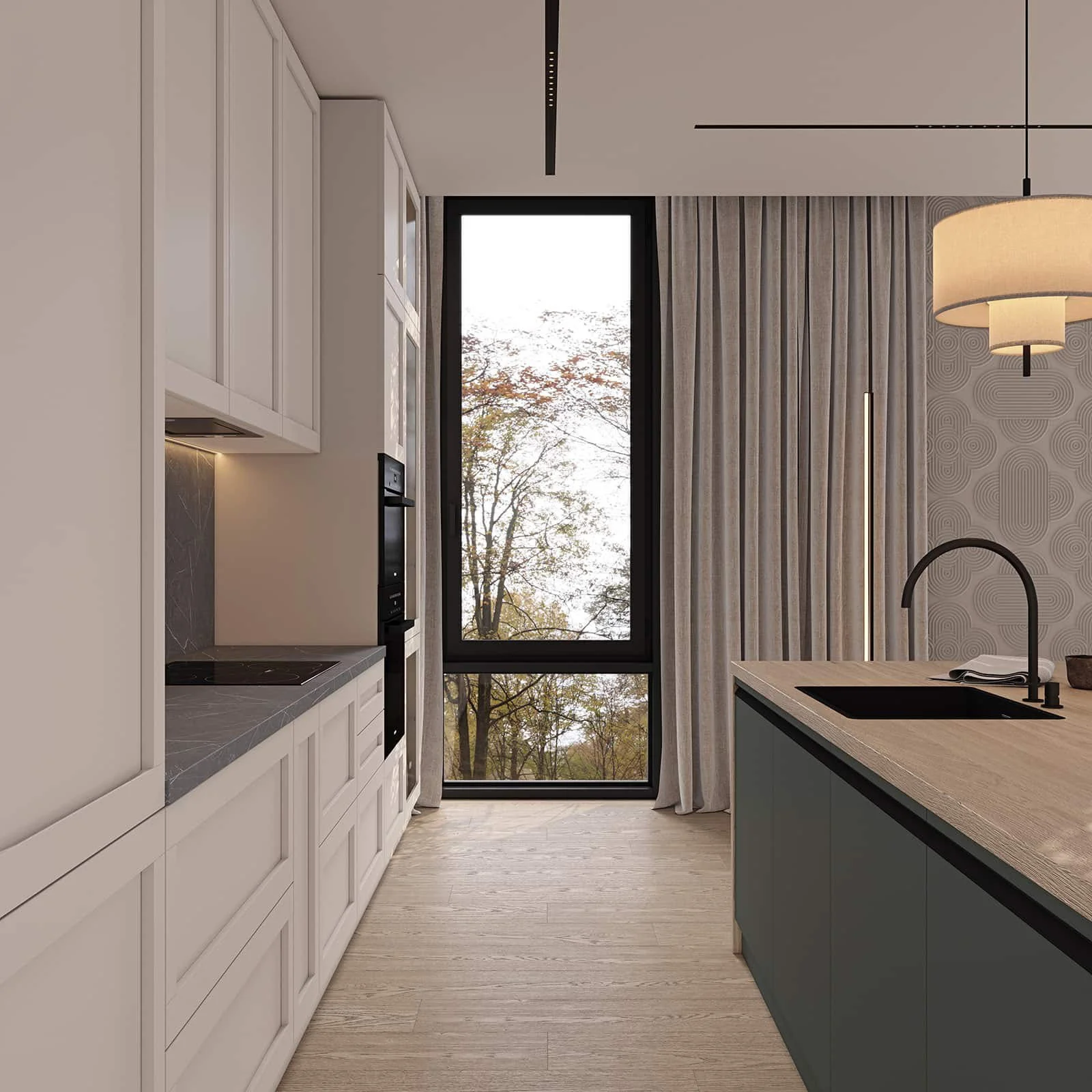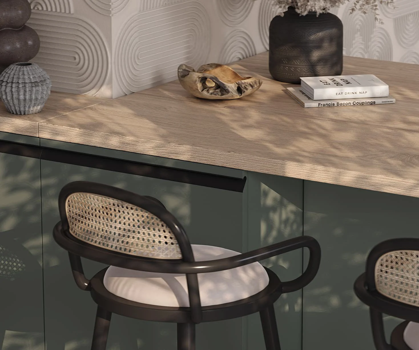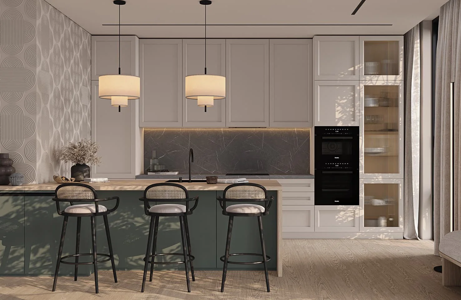 Fronts: Т368 Natural alder wood, color NCS S 1500-N / acrylic Fenix NTM, color Green NTM (0750)