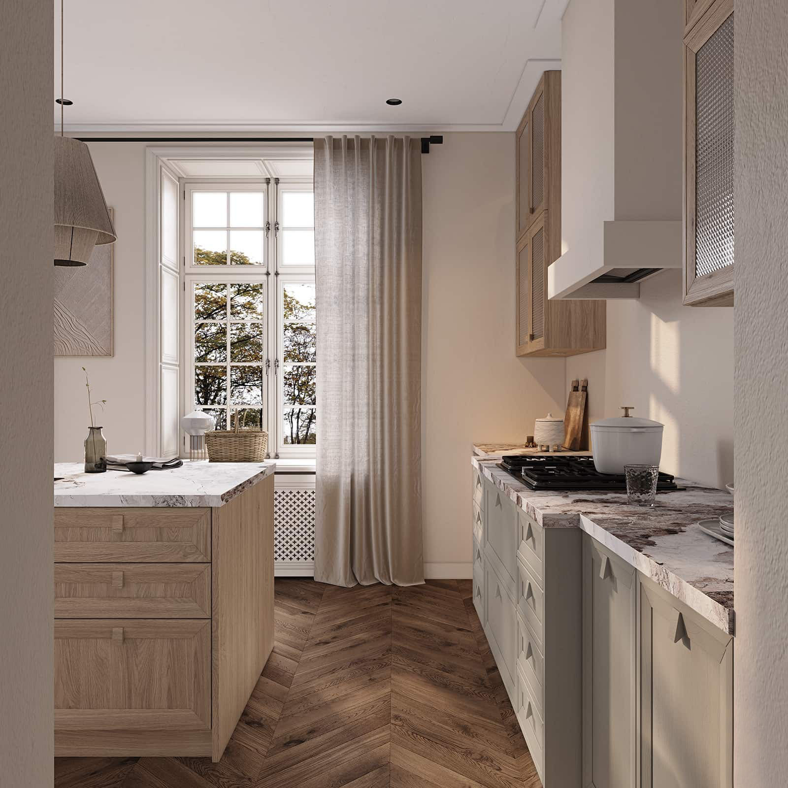 Handles: Solid oak wood (width 32 mm)