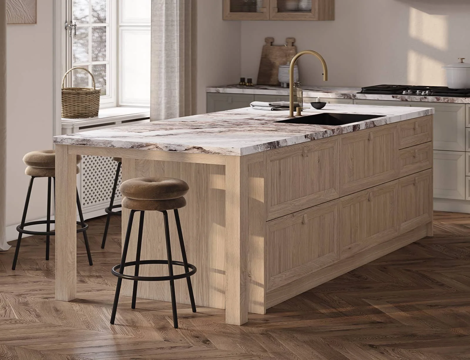 Fronts: Т746 Natural oak wood, color NCS S 2005-G30Y / #189 (wax stain White)