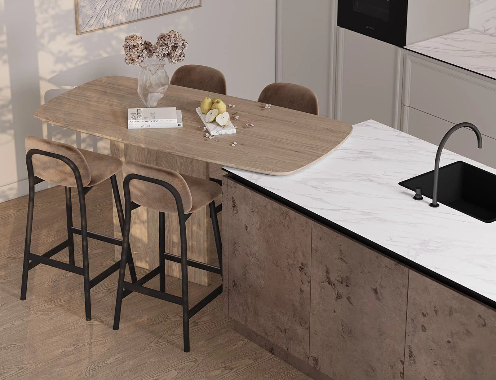 Fronts: T648 Lacquered MDF / solid alder wood, color 156; MFC Syncron, design Titanio