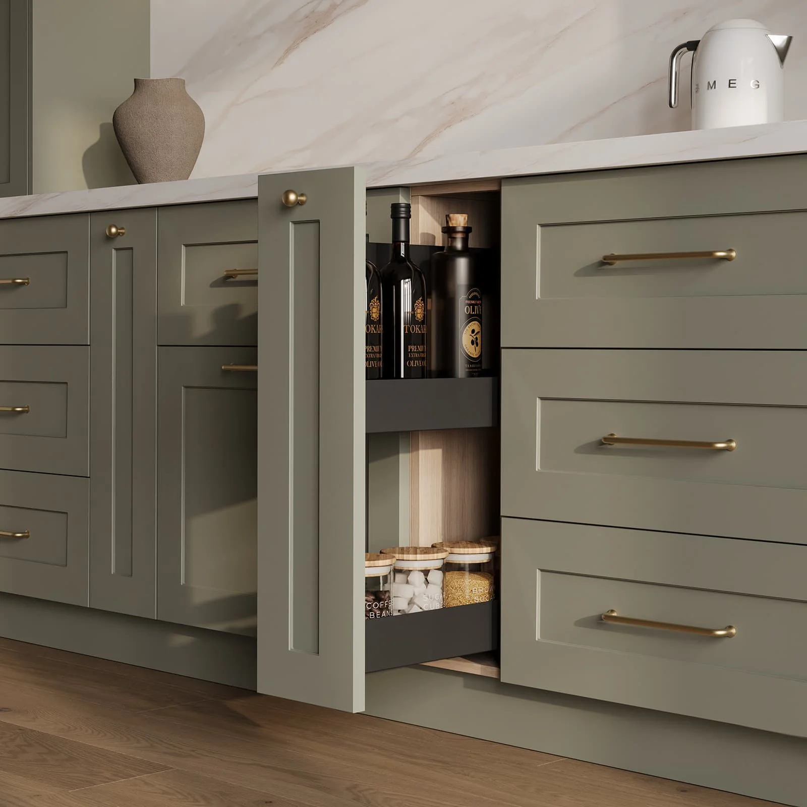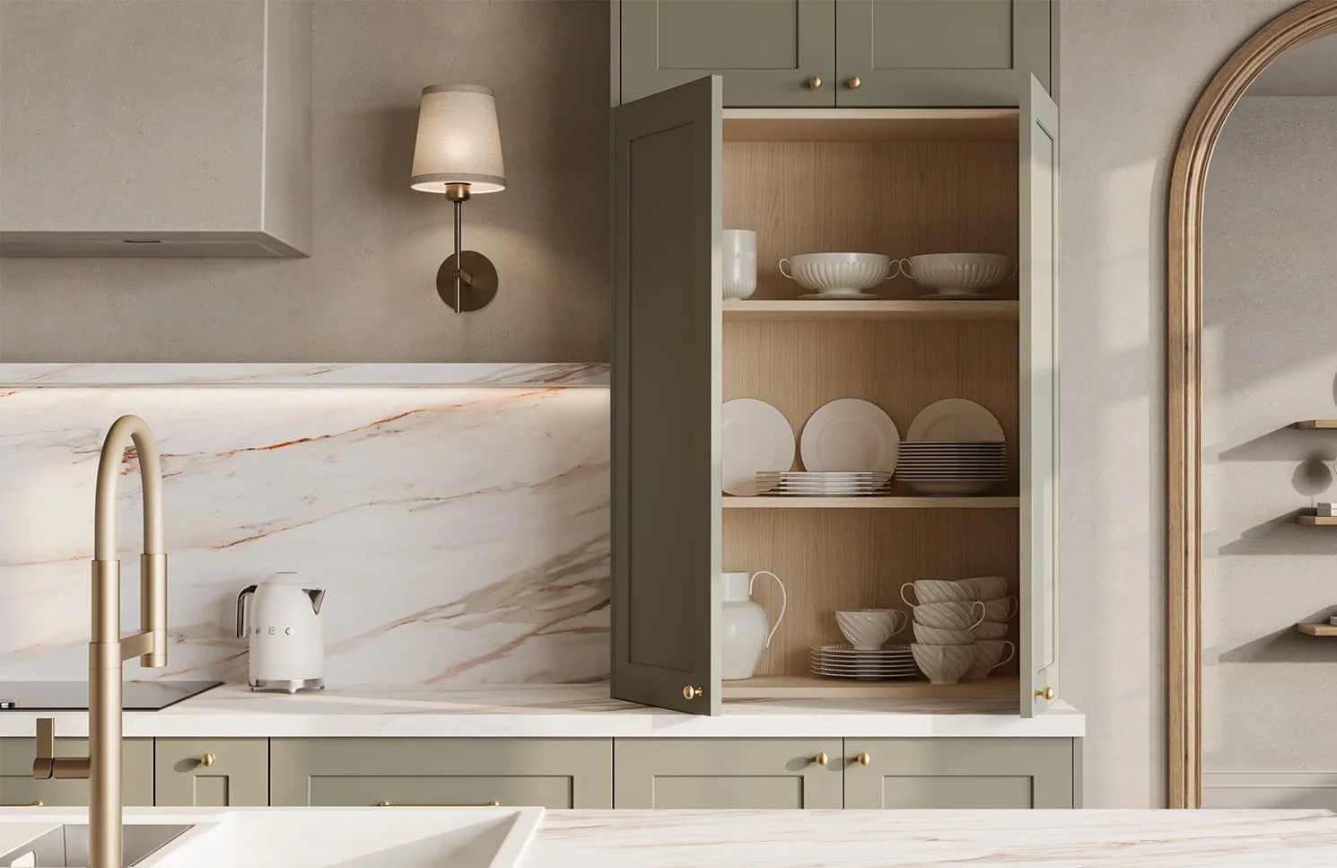 kitchen collection Materials Cabinet boxes Hardware & accessories Gallery Retail / Livon Livon Fronts: Livon (MDF / PVC), color NCS S 3010-G20Y