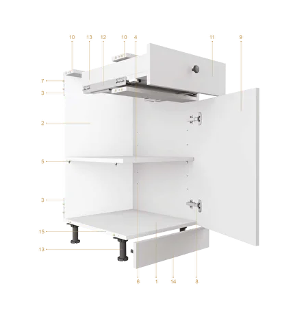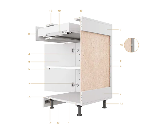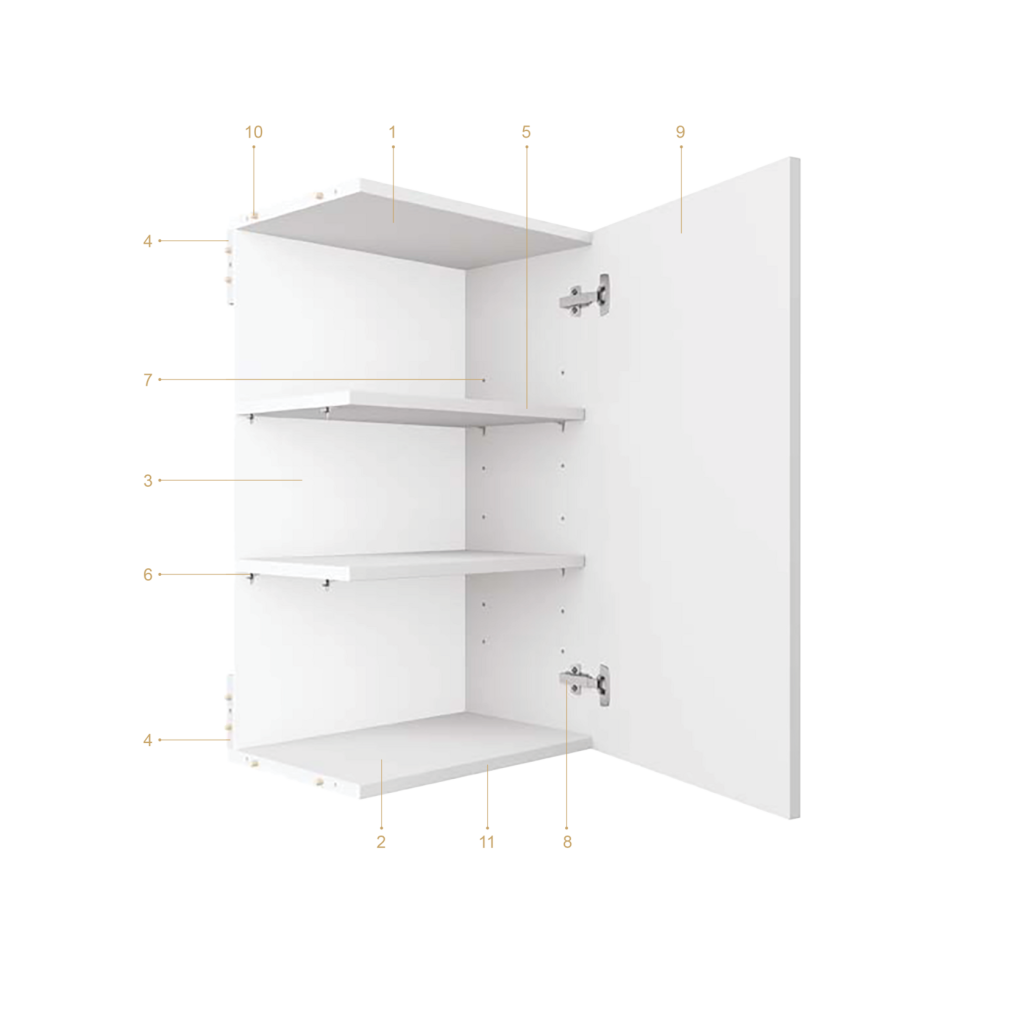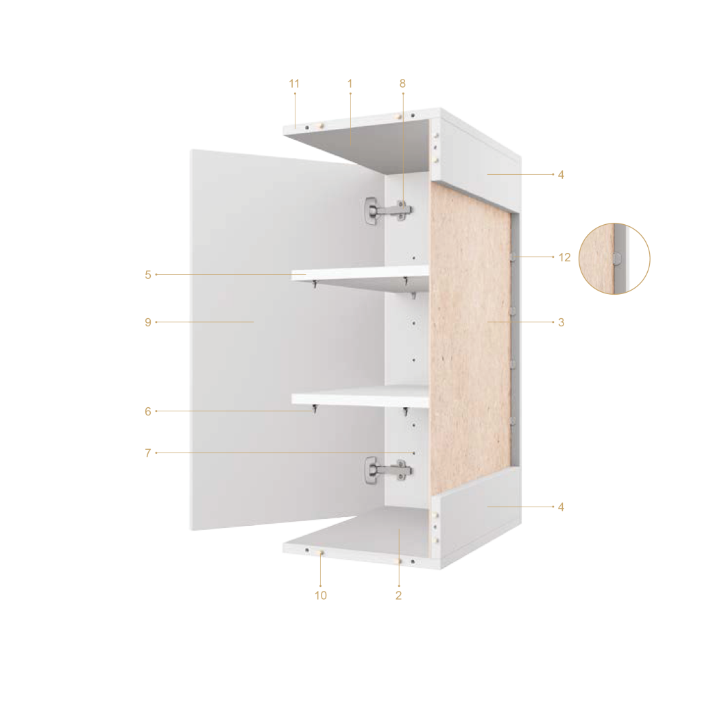 - Back panel (hardboard in White color, thickness 1 ̸ 8″)